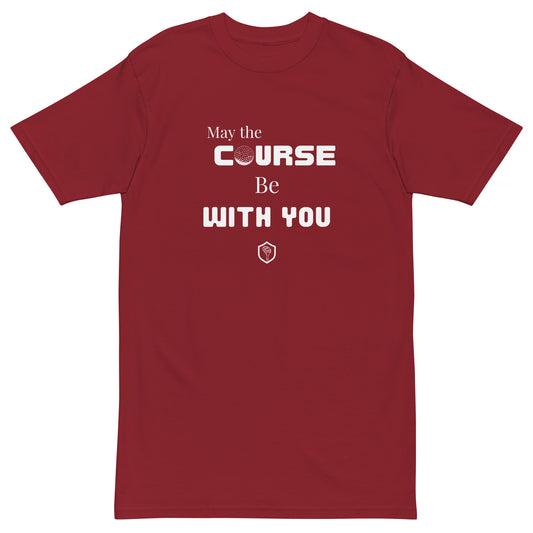 May the Course Be With You Men’s premium heavyweight tee
